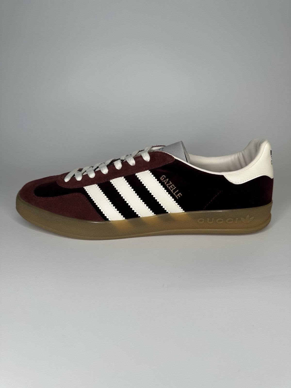 Adidas x Gucci Mens Gazelle Maroon / White Gum Sole UK10