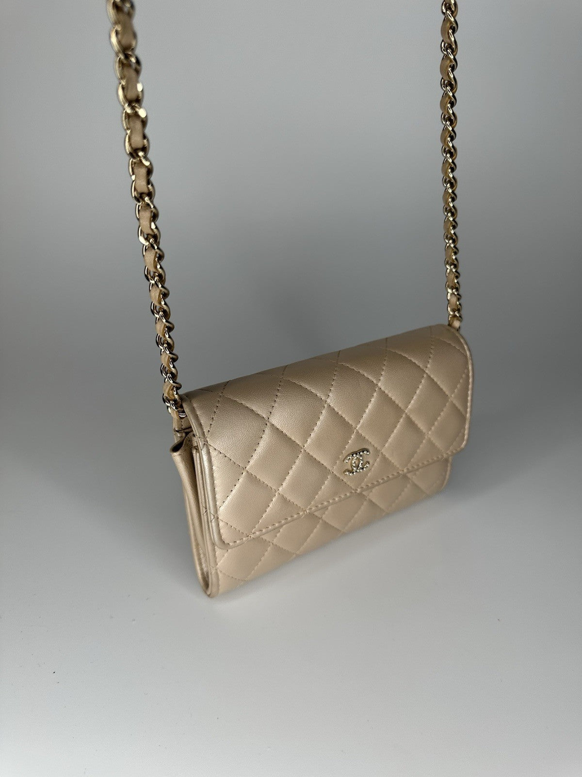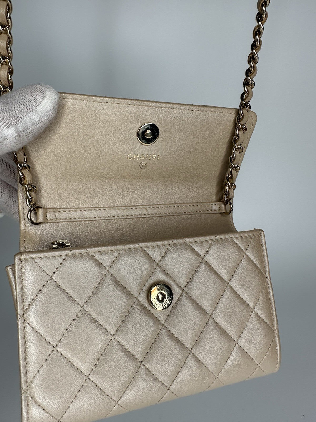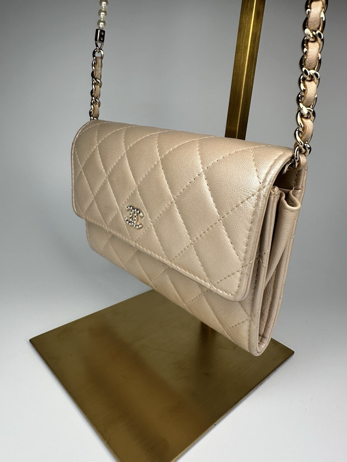 Chanel Lambskin Quilted Pearl Clutch With Chain Bag