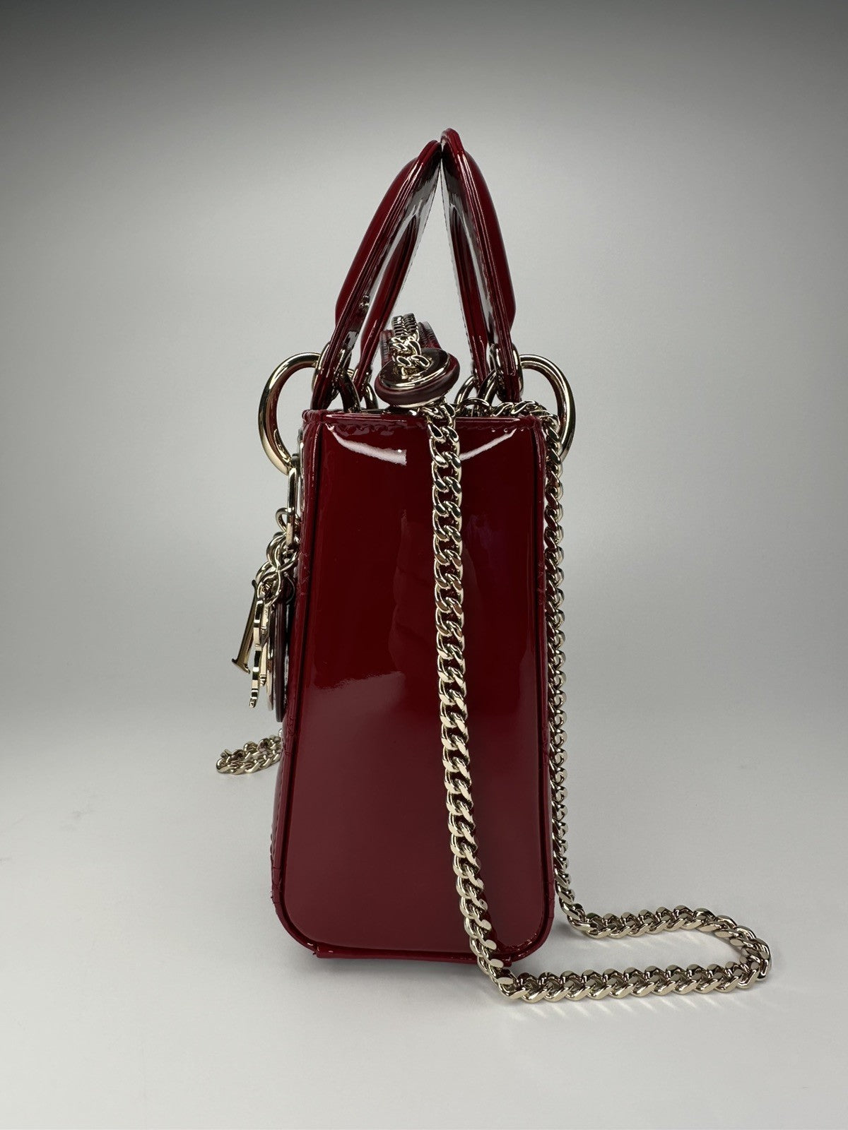 Lady Dior Mini Patent Leather Bag Cherry Red - With Detachable Chain
