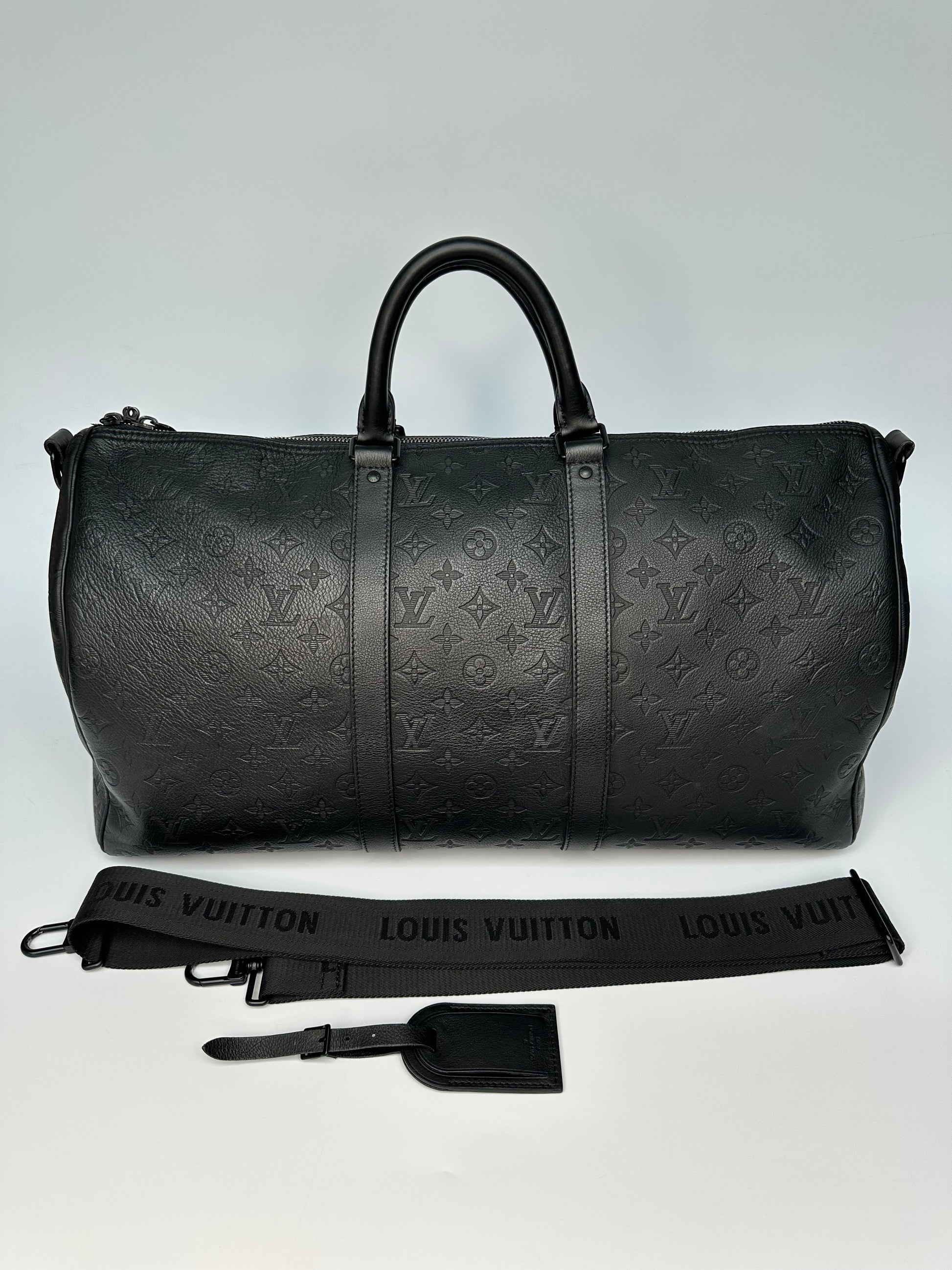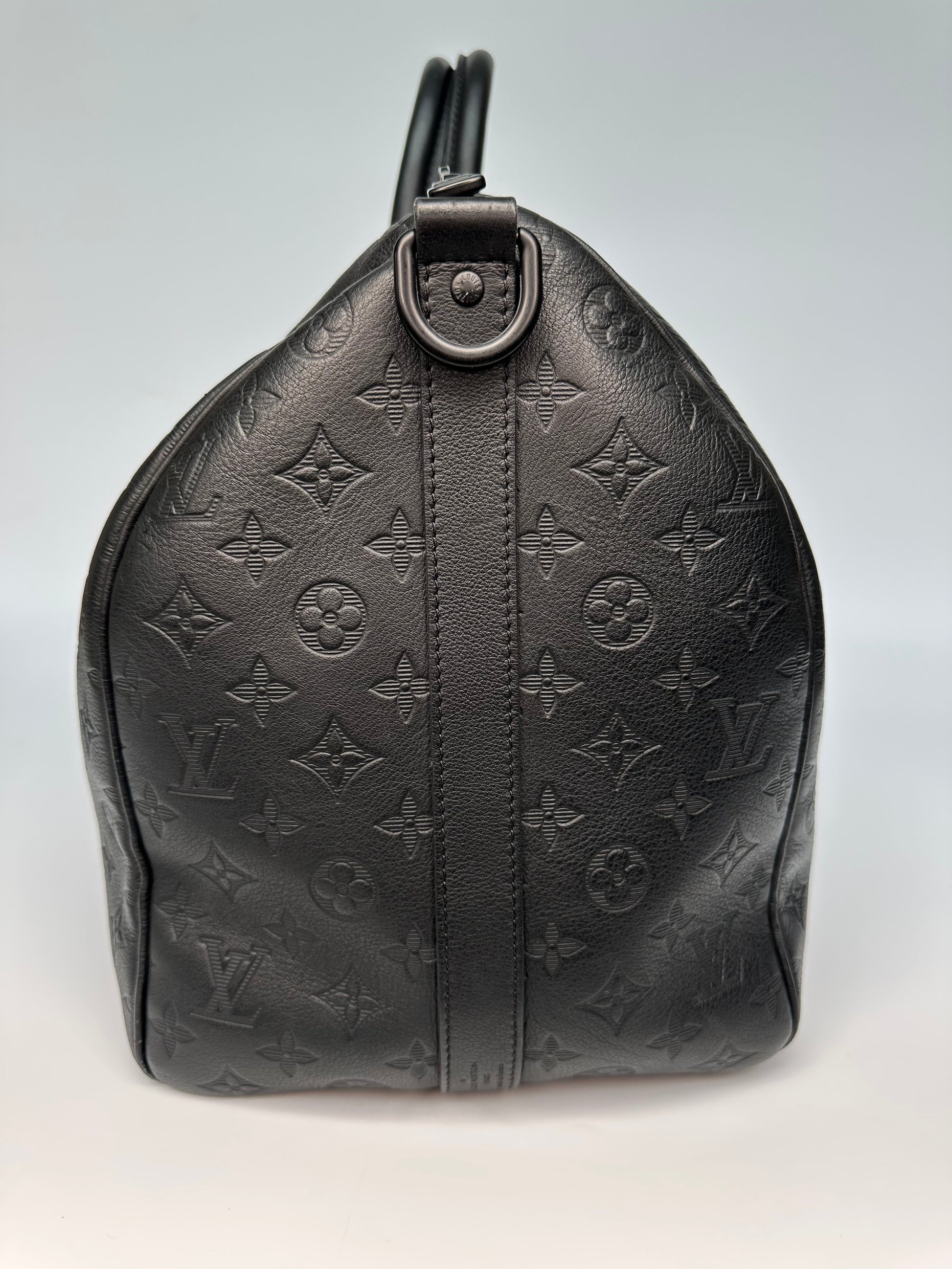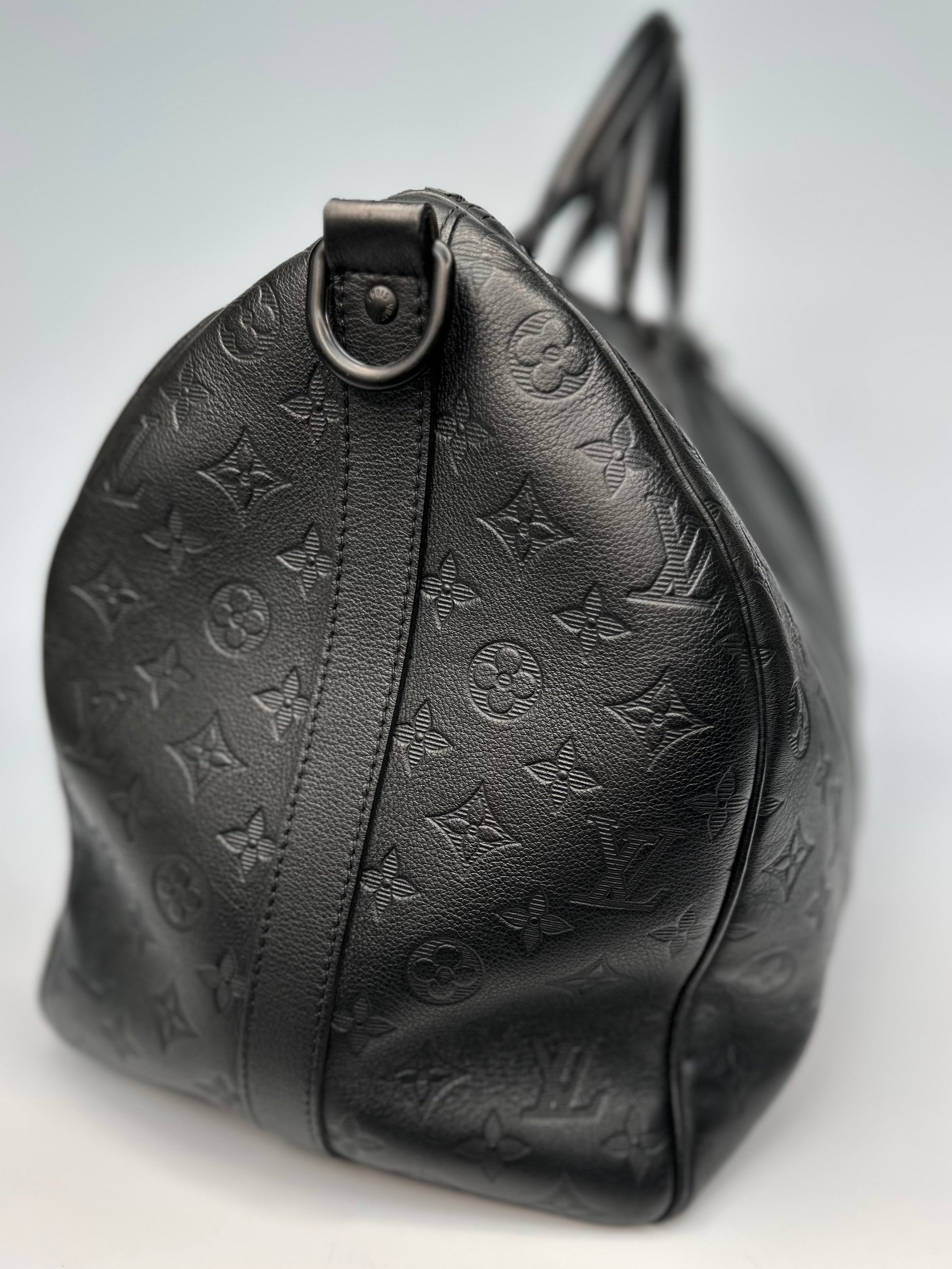 Louis Vuitton Keepall Bandoulière 50 Monogram Shadow Black Leather