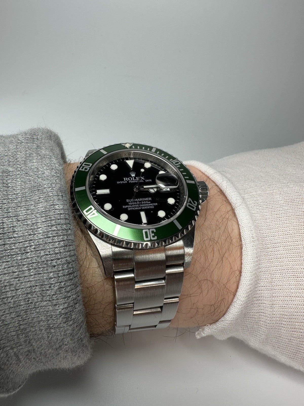 Rolex Submariner Date 16610LV Kermit 50th Anniversary 2009 Full Set Unpolished