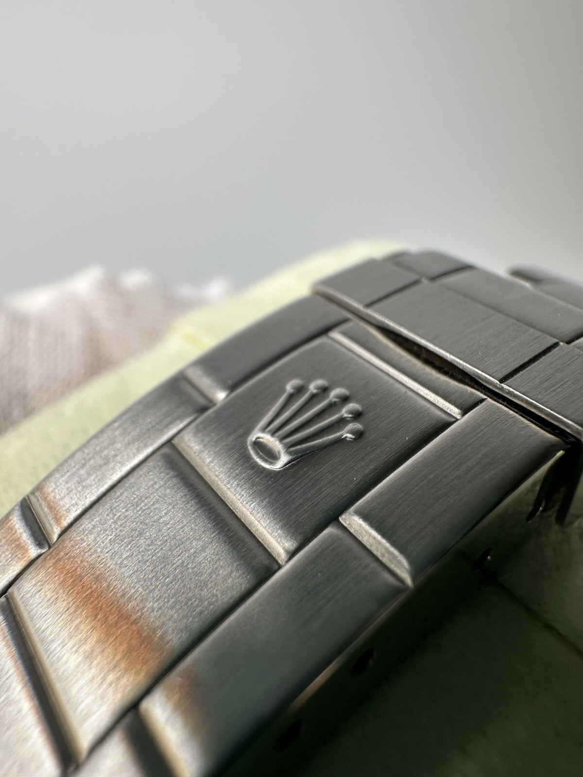 - **Condition:** Immaculate, unpolished condition with original factory chamfered edges intact and the prominent logo on the clasp. Lightly worn yet exceptionally well-preserved, this timepiece offers a blend of history and style.
