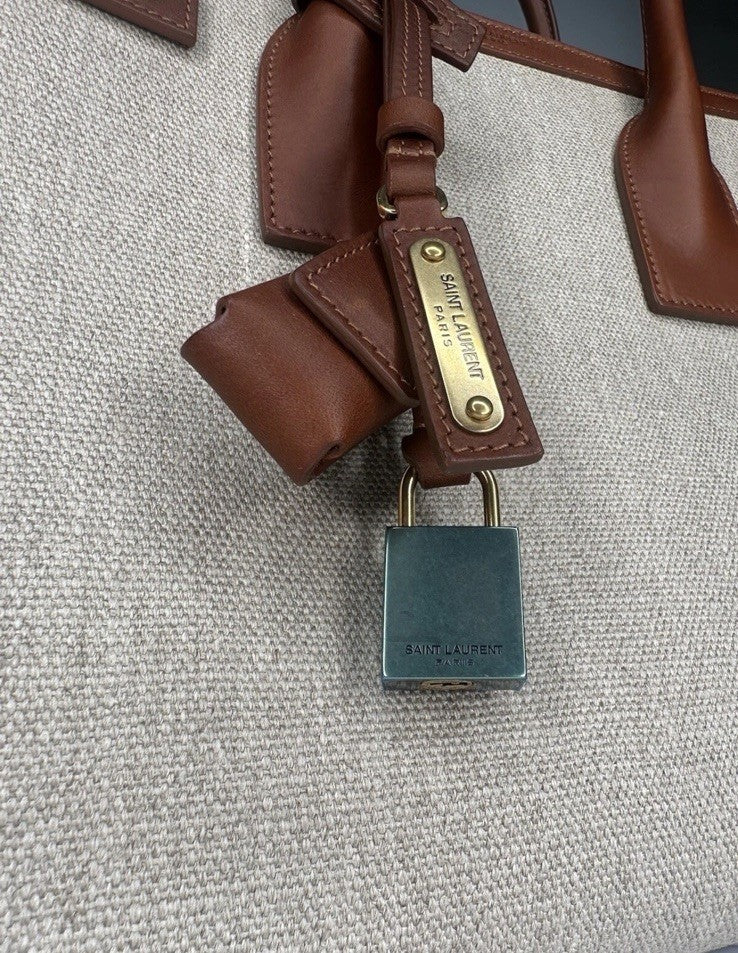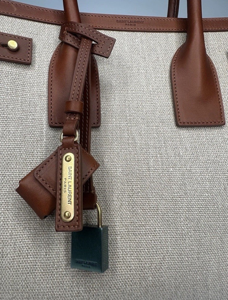 Saint Laurent Sac De Jour Leather Calfskin & Linen Cognac RRP €2990