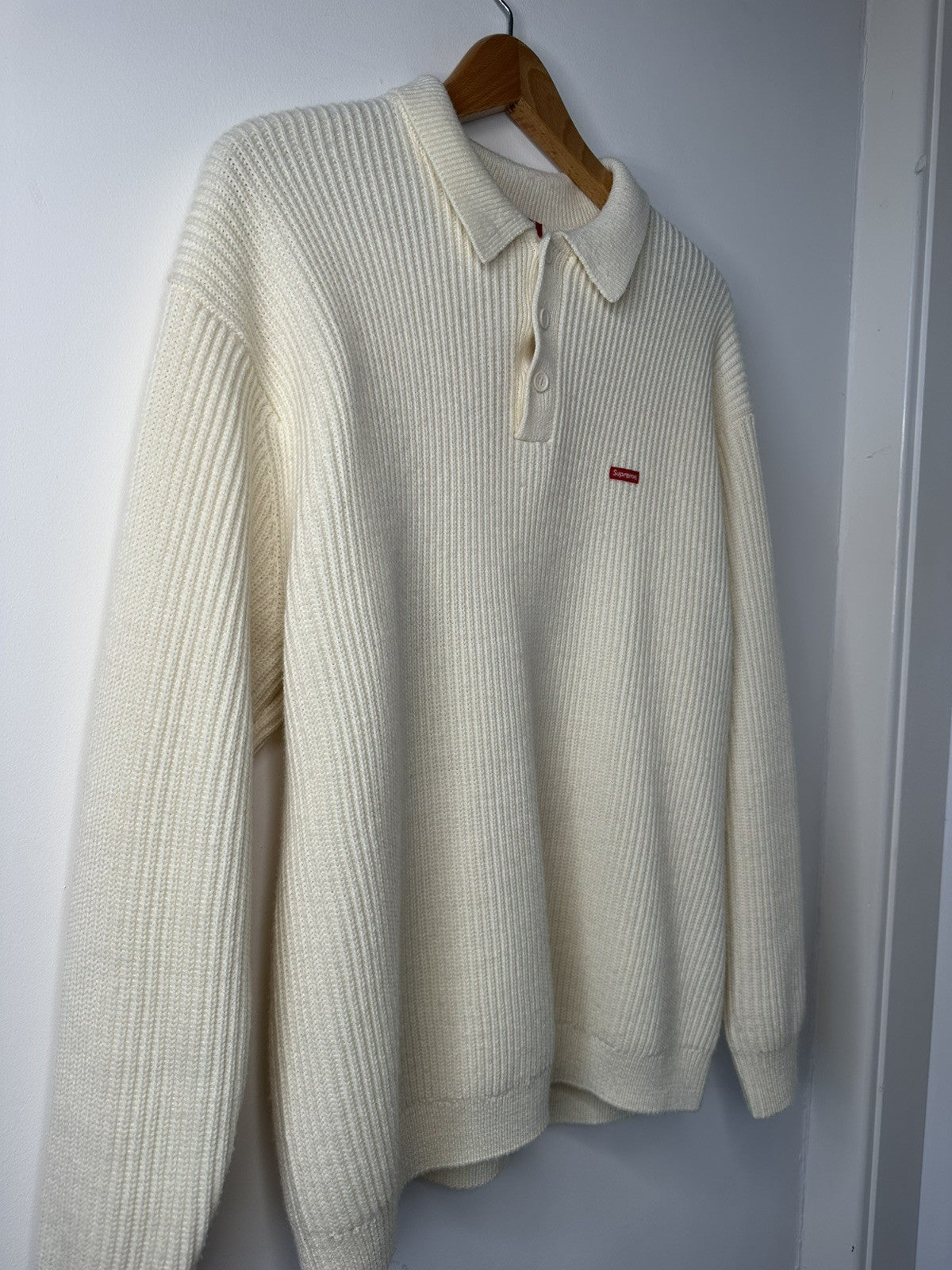 Supreme Jumper - Beige Long Sleeve Collar Jumper Wool - Rare Item - Large - Mens